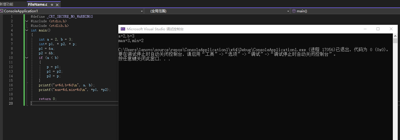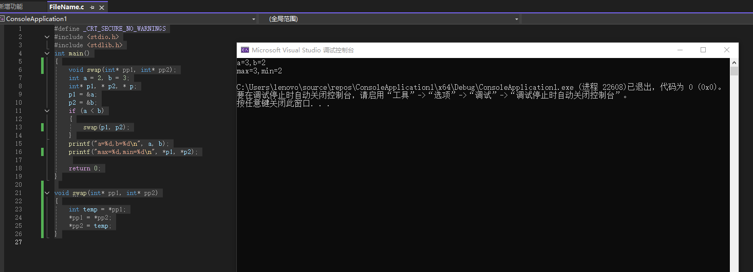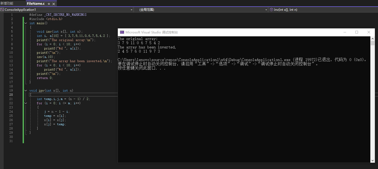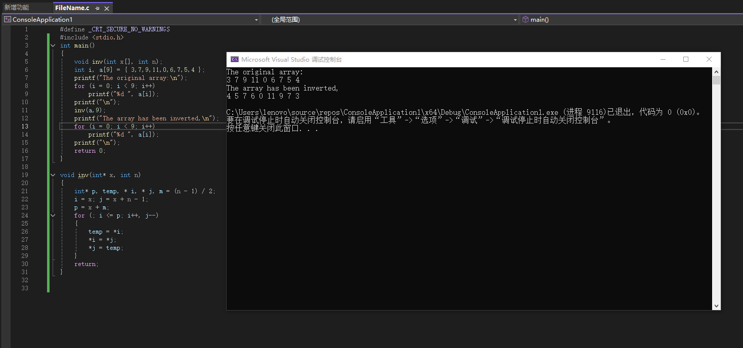 12.5.1、实参和形参都使用数组,代码如下所示: