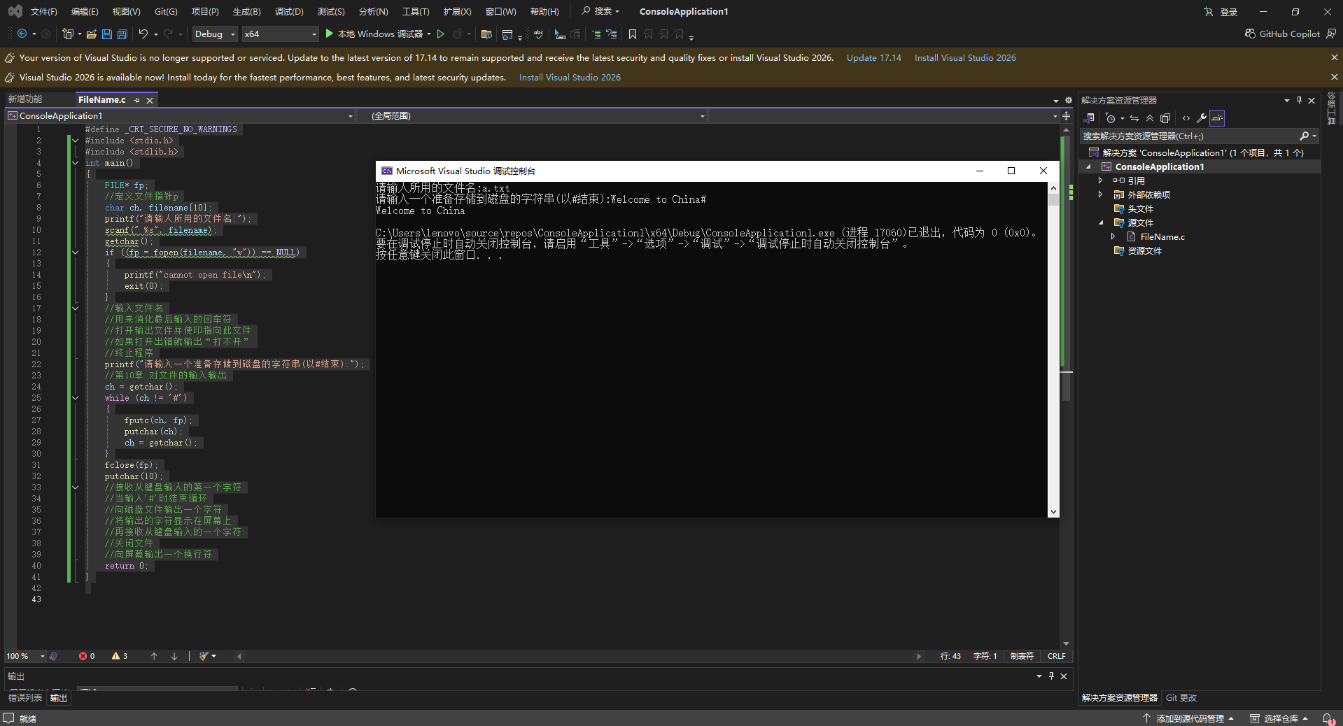 while语句换成while (ch!=EOF)或者while (ch!=-1)都可以。