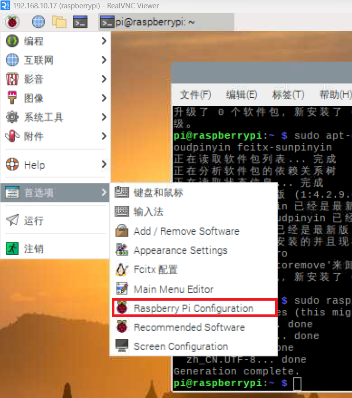 重启树莓派后进入桌面环境(实际桌面或者VNC远程桌面),我们可能还需要进行配置才可以显示成中文。