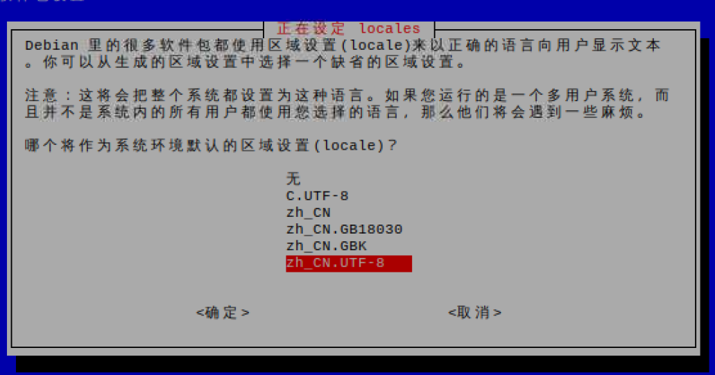一直按到最下面,选择zh_CN.UTF-8,按回车确认。