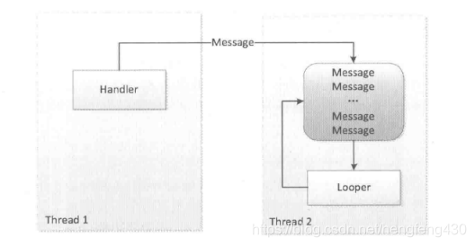 Handler将Message发送到Looper的消息队列中,即MessageQueue,等待Looper的循环读取Message,处理Message,然后调用Message的target,即附属的Handler的dispatchMessage()方法,将该消息回调到handleMessage()方法中,然后完成更新UI操作。