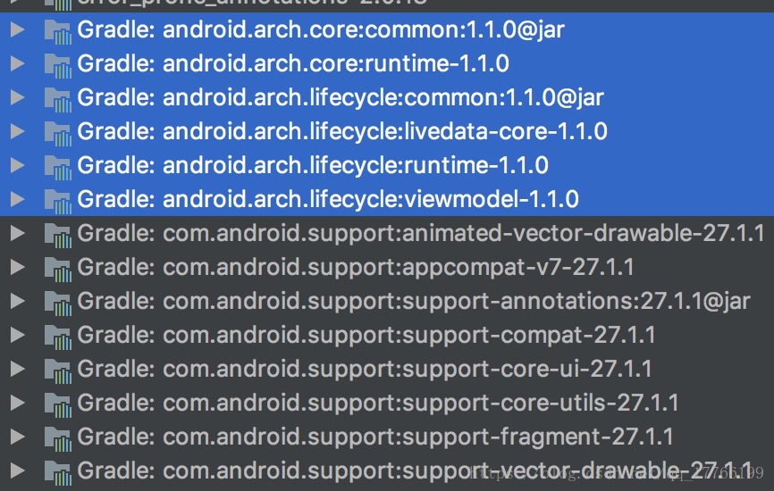 可以看到27.0.0的v7库有依赖Lifecycles。
