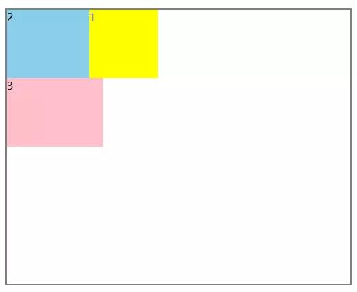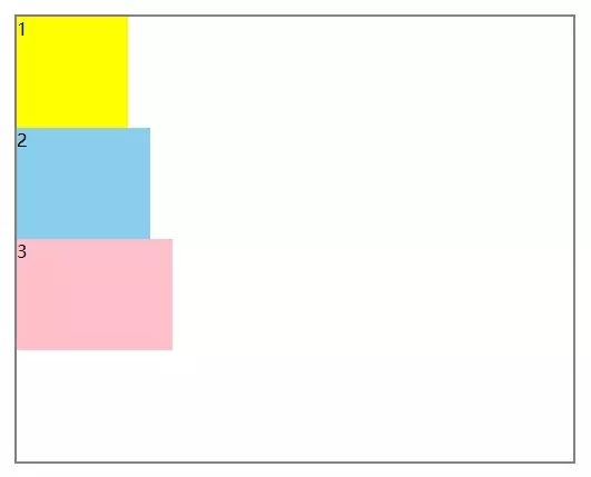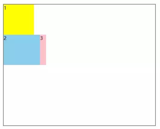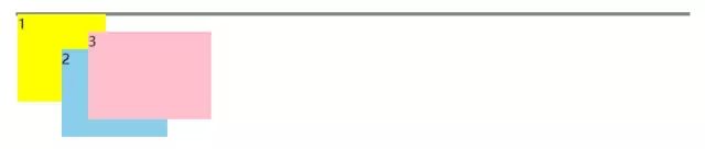 图中可以看出1,2,3进行了绝对定位,并且重叠在了一起。其重叠特性为下面的特点二。