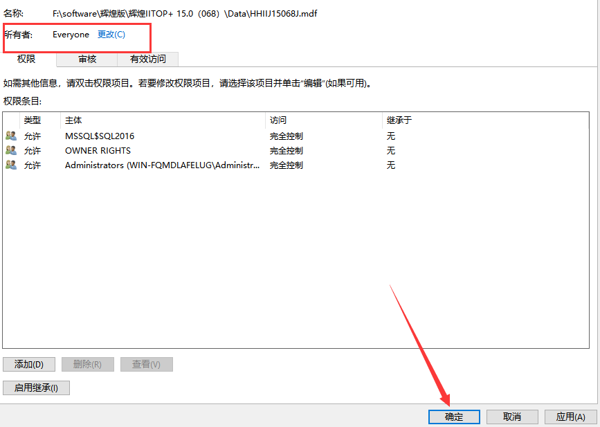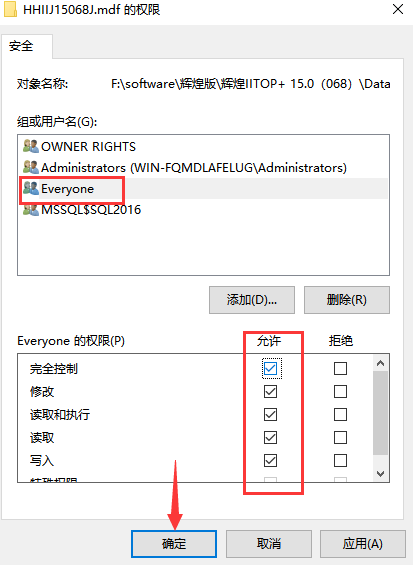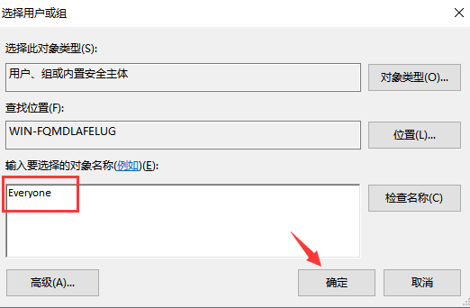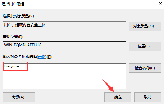 6,我们手动输入Everyone之后,点击确定,并在接下来的界面中选中Everyone用户,且勾选上所有权限。