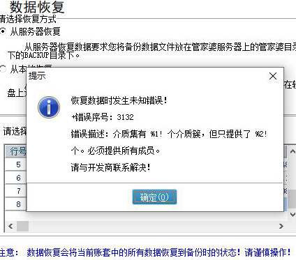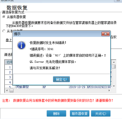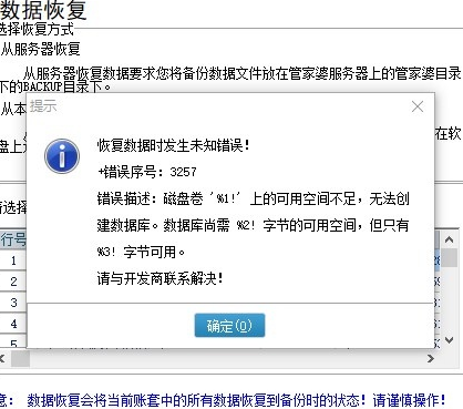 回答:此报错一般是备份文件损坏造成,可以换其他备份恢复确认试试。