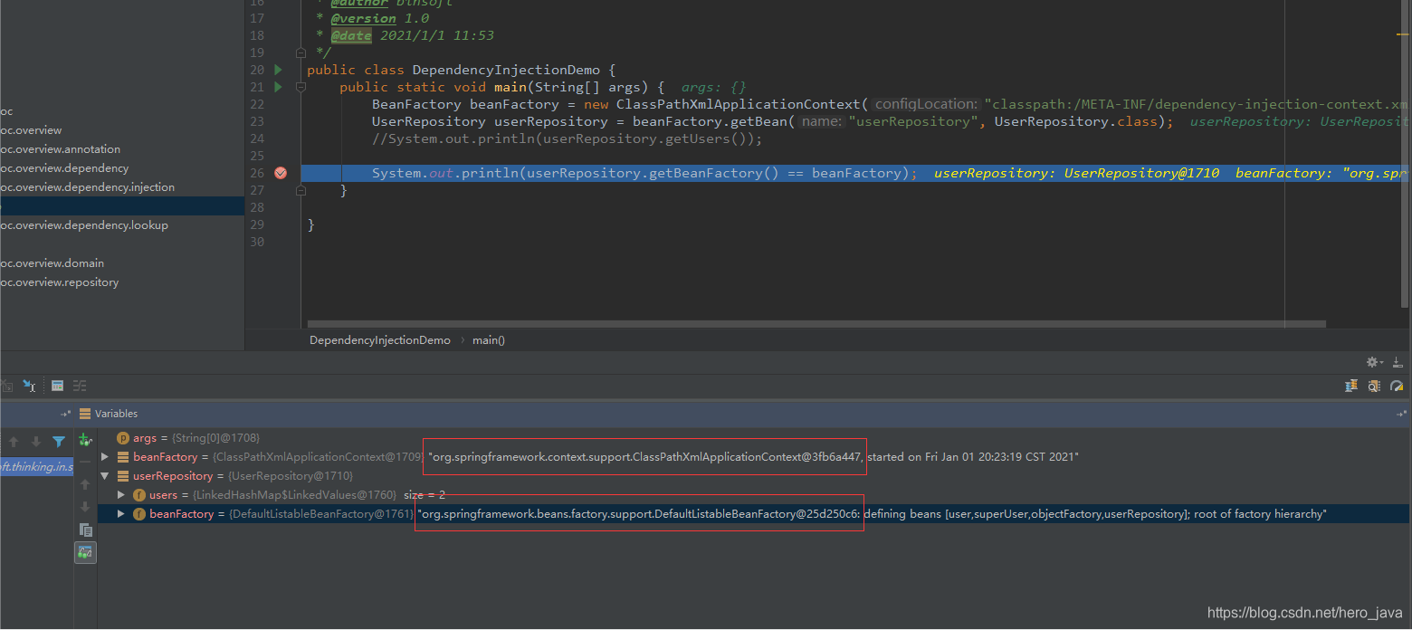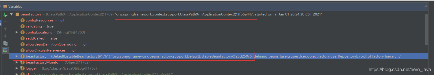 从图中可以看出,依赖注入的两个内建的依赖都是DefaultListableBeanFactory@25d250c6