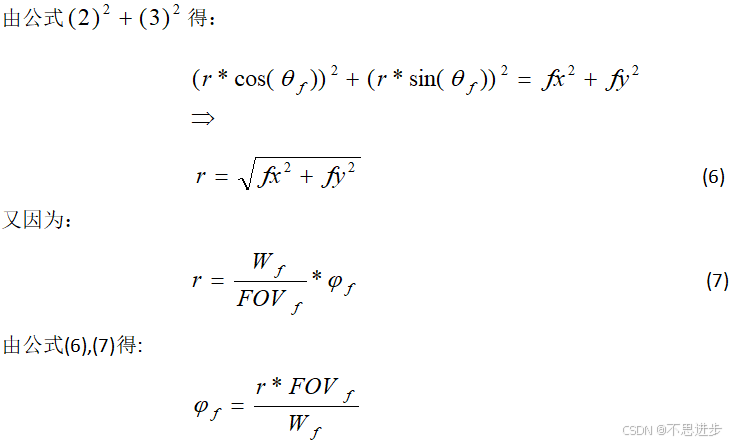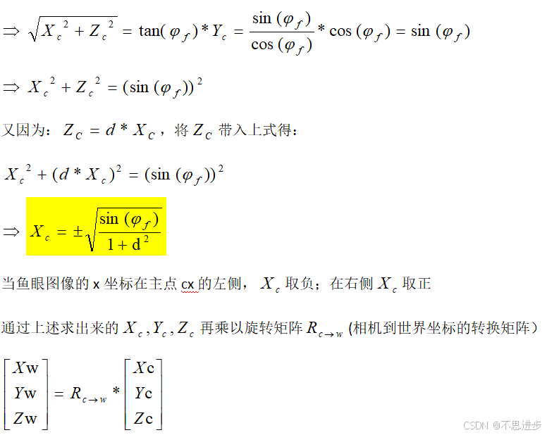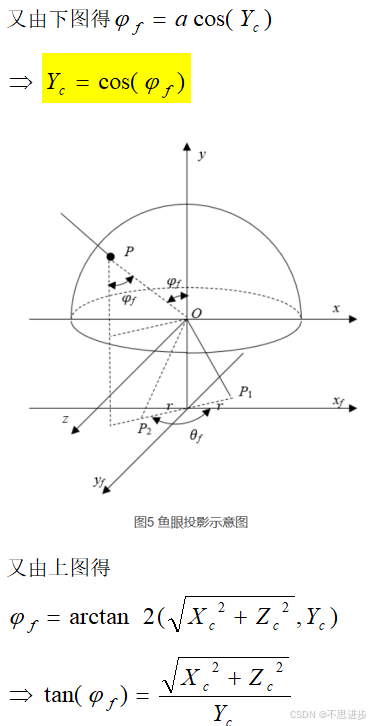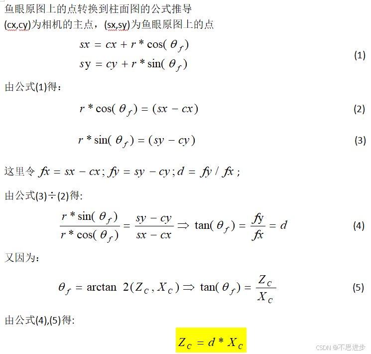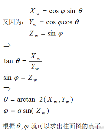 上述文章给出了柱面图中的点到鱼眼原图点的转换关系,本文根据上述文章给出鱼眼原图上的点转到柱面图的公式推导: