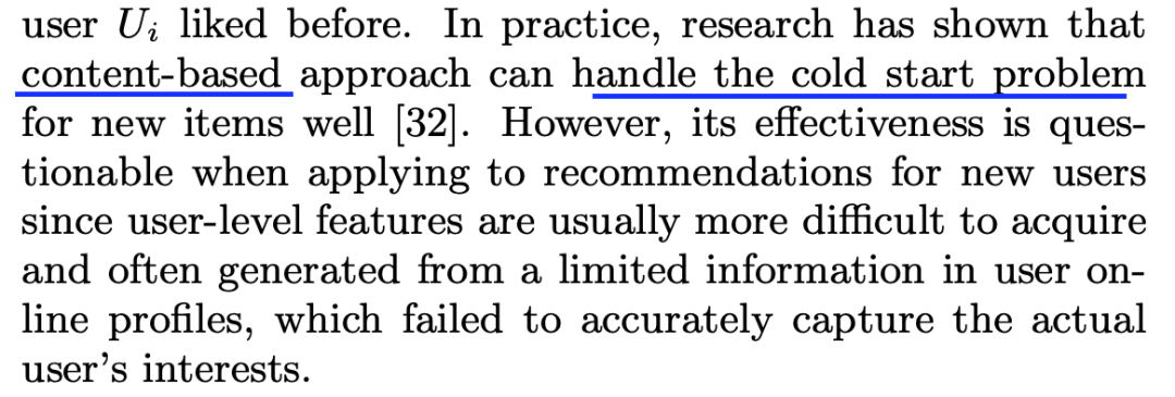 基于内容的方法能够解决冷启动问题,但是有些信息并没那么容易获取