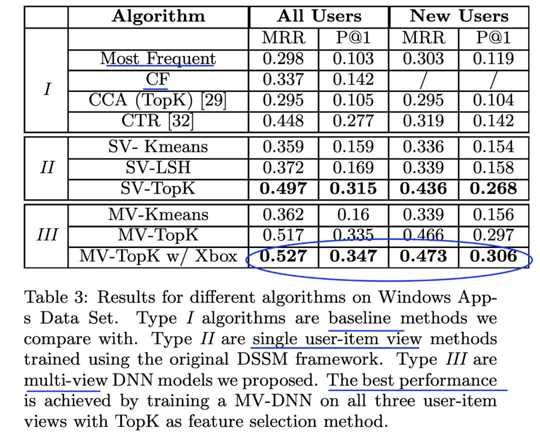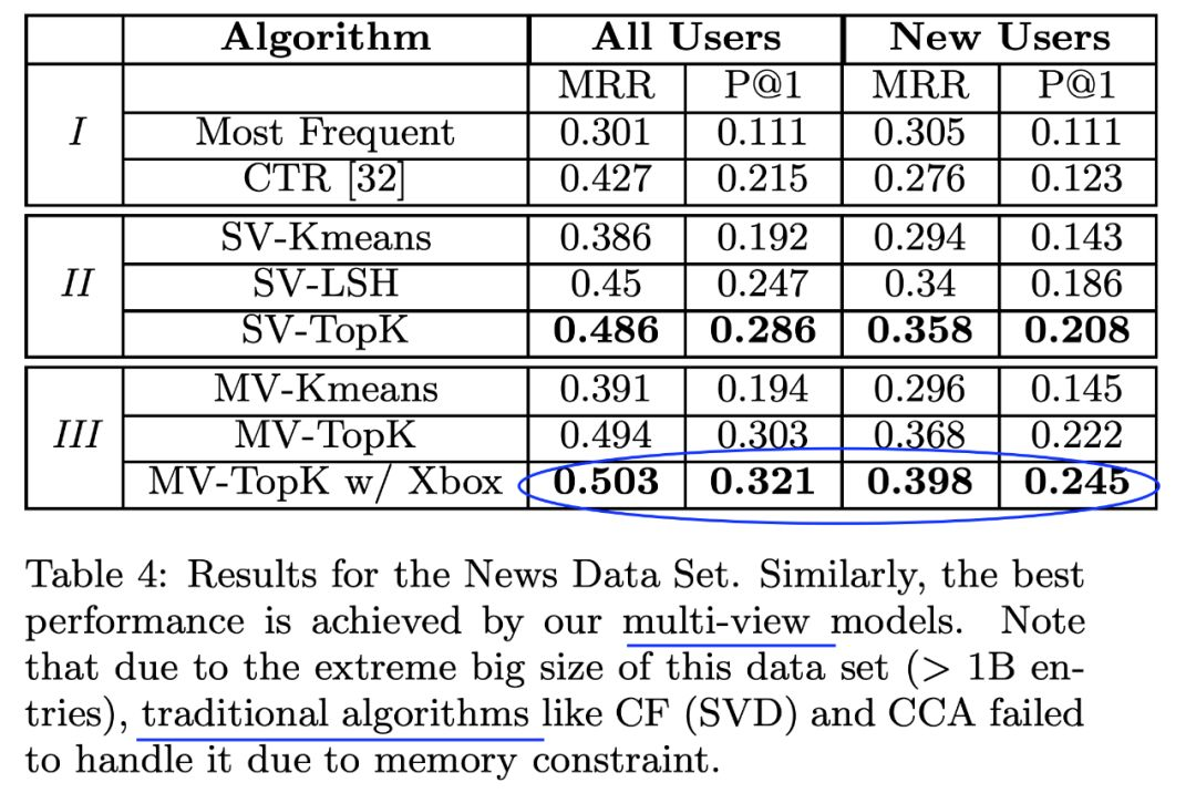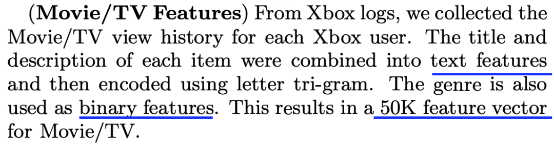 作者们在三个来自微软产品的数据上进行了实验,windows上的app推荐,新闻推荐,电影/电视推荐。结果表明,该方法显著优于当时最好的算法,在现有用户上有49%的提升,在新用户上有115%的提升。