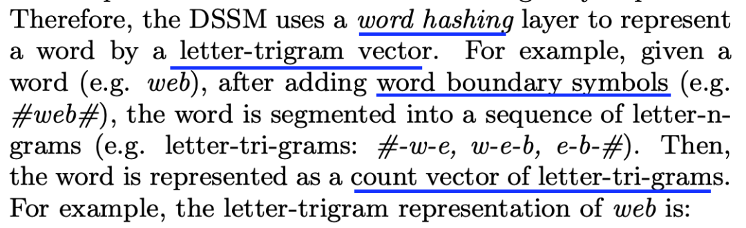 在DSSM中,不是利用one-hot编码,而是利用hash方法,比如
