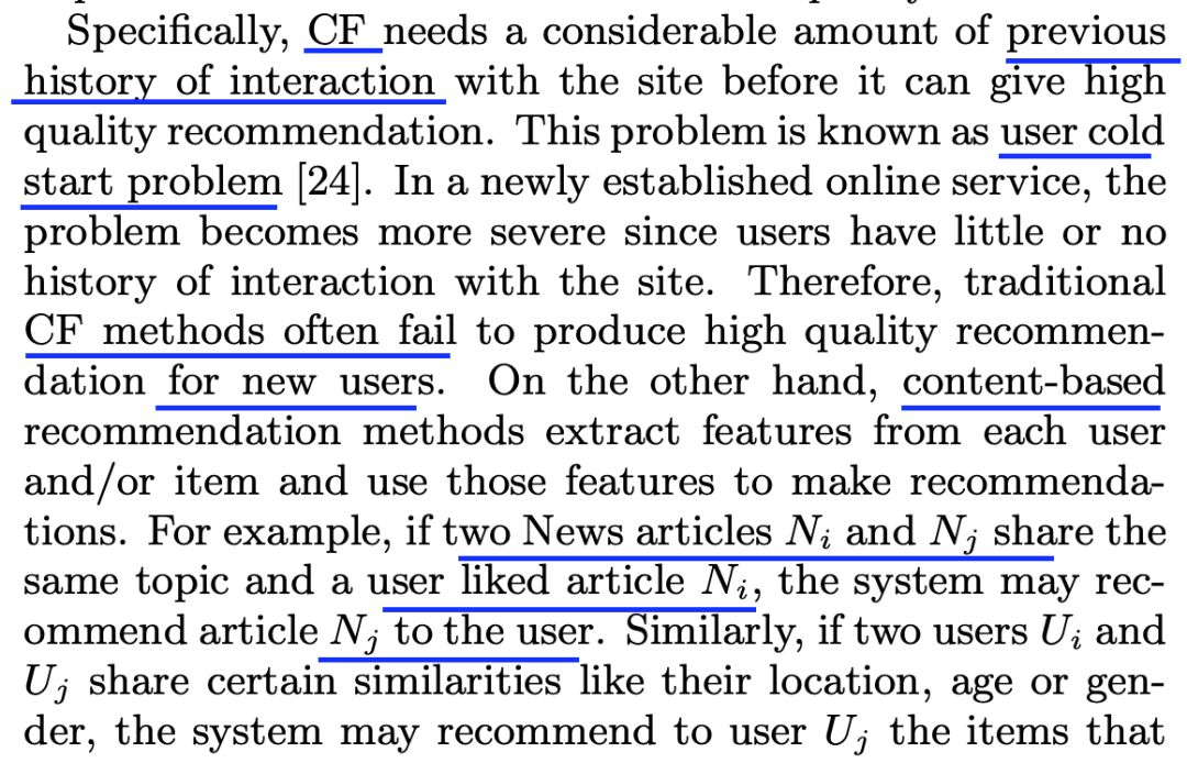 协同过滤的缺点在于冷启动