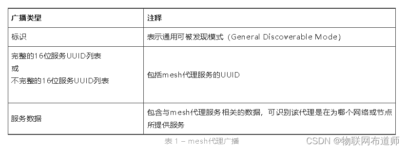 低功耗蓝牙设备使用GAP广播来帮助其他设备发现自己。蓝牙mesh代理节点使用完全相同的技术,即通过“GAP可连接型广播(connectable advertising)数据包”,对自身的可用性、可作为代理节点的角色、及其身份进行广播。