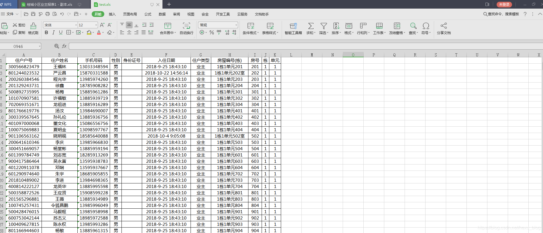//户主 电话 身份证 有无房屋 房屋缴费类型 房屋面积(m²) 房屋单价:m²/元 有无车位 车位费 车位缴费类型 单元(栋)