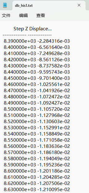 zone history name 'db_his1' displacement-z position 531.5 300 -940