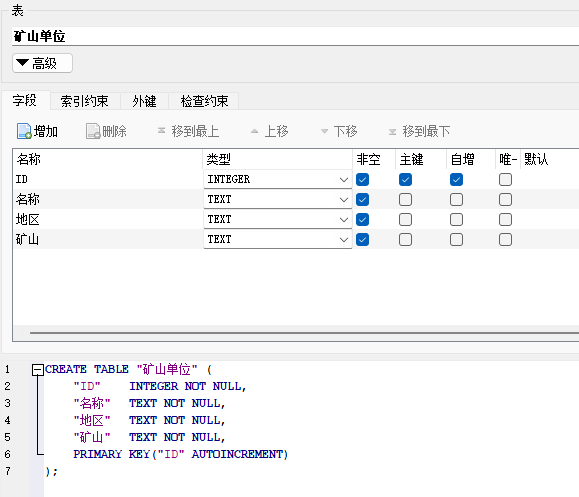 矿山单位 u:表示将表名 “矿山单位” 转化为 “u”