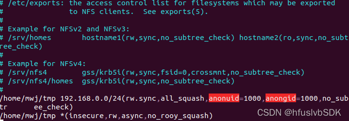 /home/lss/work 192.168.0.0/24(rw,sync,all_squash,anonuid=1000,anongid=1000,no_subtr ee_check)