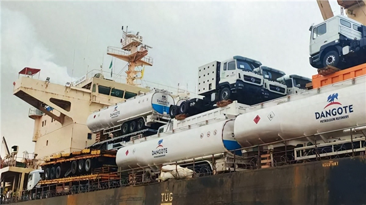 载有东风CNG燃气油罐车的货轮靠港尼日利亚阿帕帕港 供图 中国东风汽车工业进出口有限公司