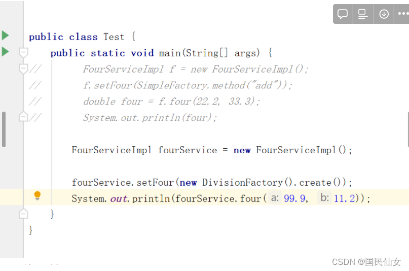 测试类调用factory的静态方法创建对象: