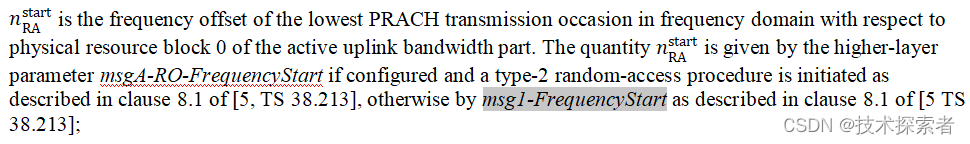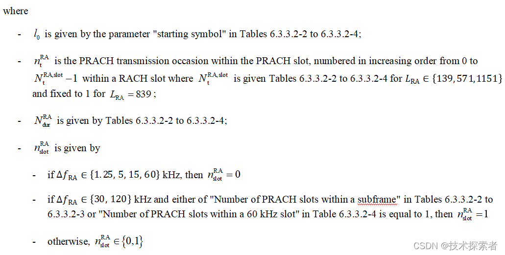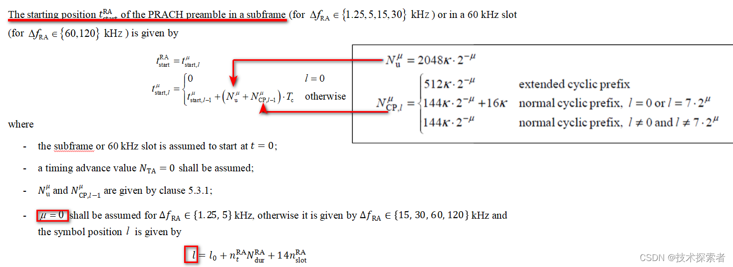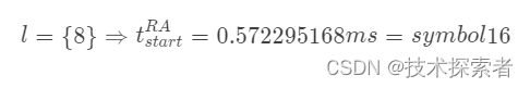 计算完 l 的取值还没最终结束,真正的时间起点是t_{start}^{RA},还需要注意PRACH的SCS和PUSCH/PDSCH的SCS可能不同,这样会导致计算出来的符号长度不一致。