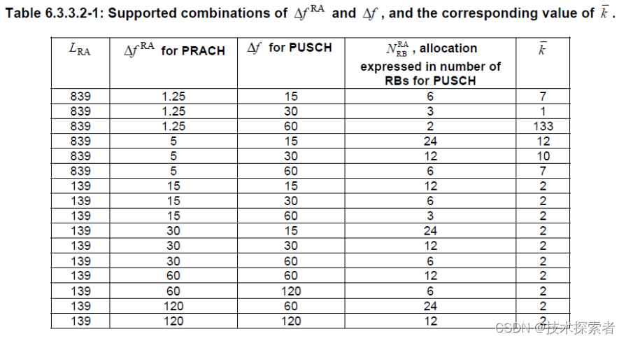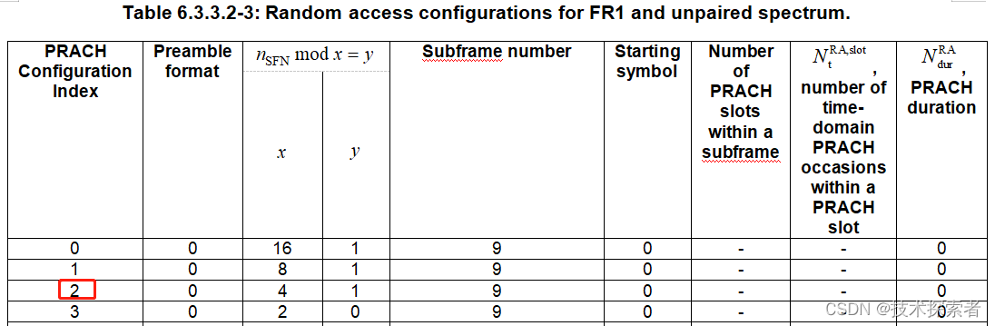 本博客沿用上一篇博客中的例子----2.6GHz/TDD的NR系统,使用prach-ConfigurationIndex参数就去查FR1 TDD的表(38211 6.3.3.2-3),这张表里都有什么呢?