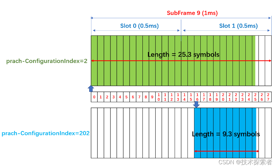 综合以上计算,可以知道上面的两个例子对应PRACH时域起点和长度