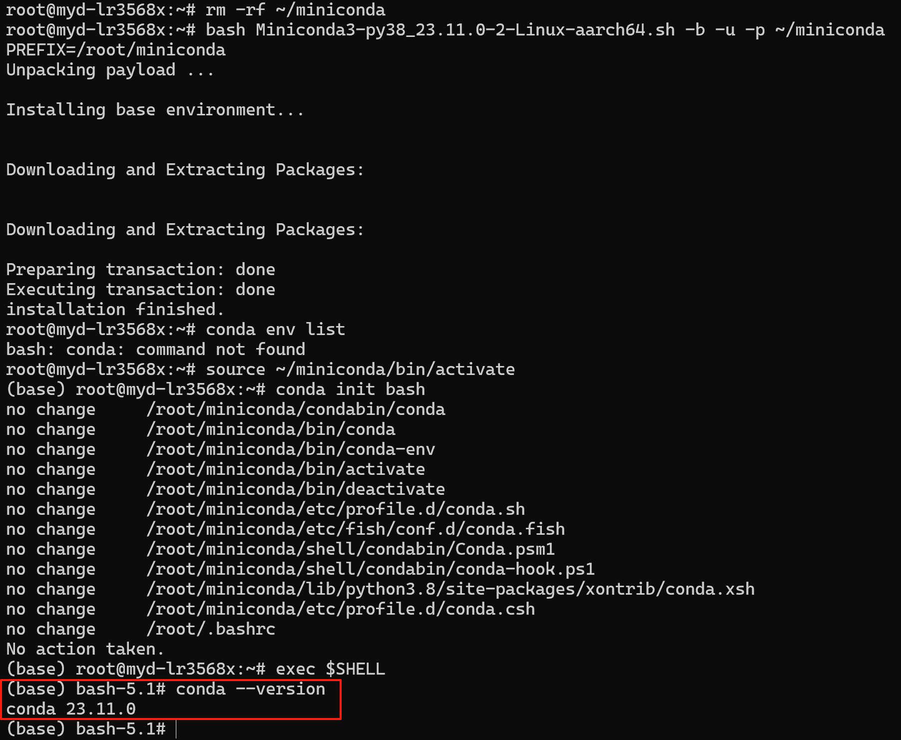 wget https://mirrors.tuna.tsinghua.edu.cn/anaconda/miniconda/Miniconda3-py38_23.11.0-2-Linux-aarch64.sh# 如果之前安装过 miniconda 版本不一致则需要先删除