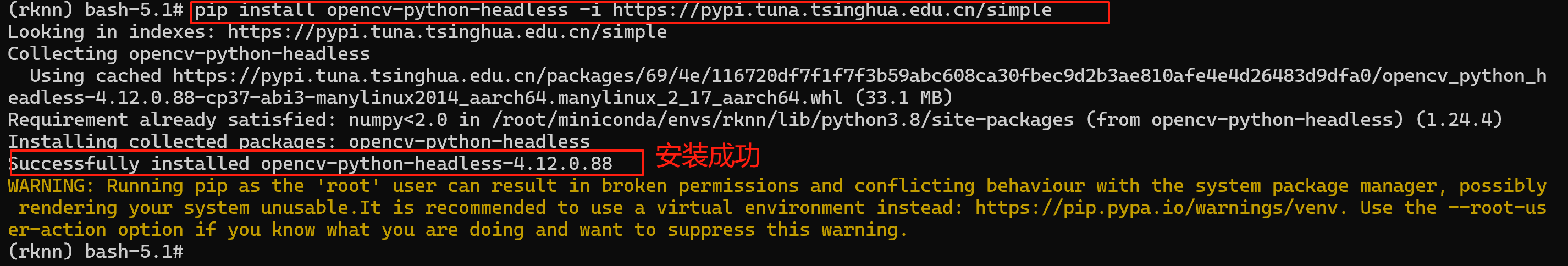 pip install opencv-python-headless -i https://pypi.tuna.tsinghua.edu.cn/simple# 验证安装