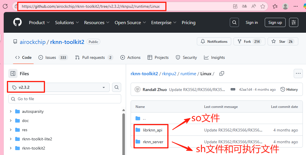 https://github.com/airockchip/rknn-toolkit2/tree/v2.3.2/rknpu2/runtime/Linux这是一个 git 网页,找到以下四个文件,下载到本地,导入设备 root 路径下: