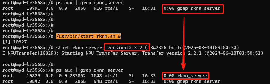 ps aux | grep rknn_server# 如果之前已经有正在运行的了,导致 /usr/bin/start_rknn.sh & 失败