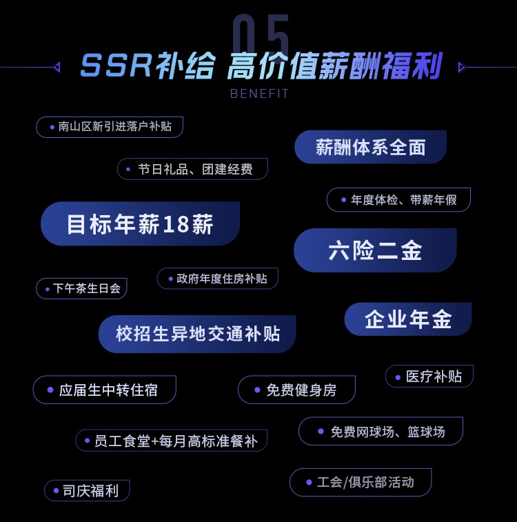 员工餐厅、每周下午茶、每月生日会、每月团队聚餐、每年公费旅游