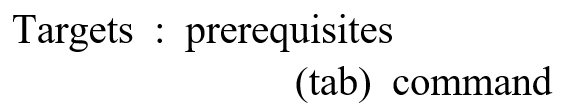 - 其中,“ : ”前面的文件就是Target,是make操作的最终目标,
