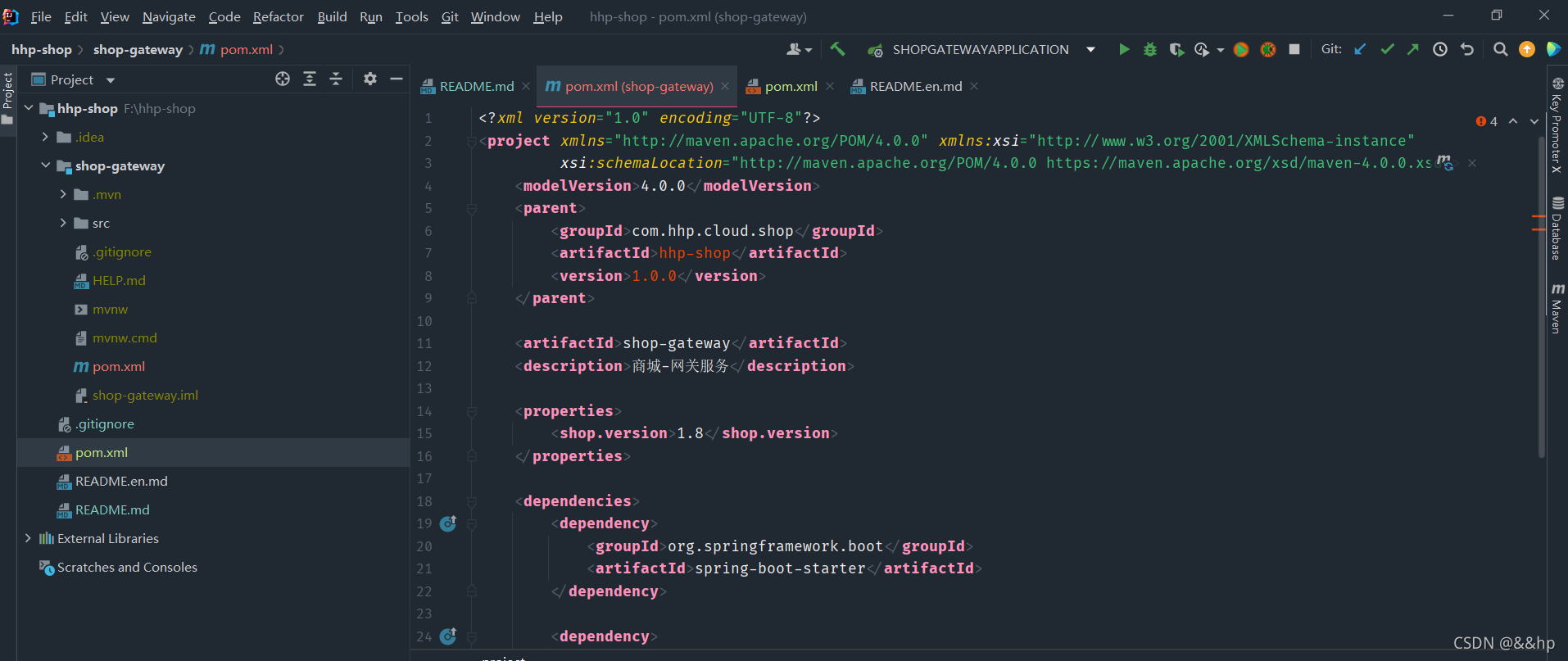 3.3在主项目的pom.xml文件将gateway网关服务添加进