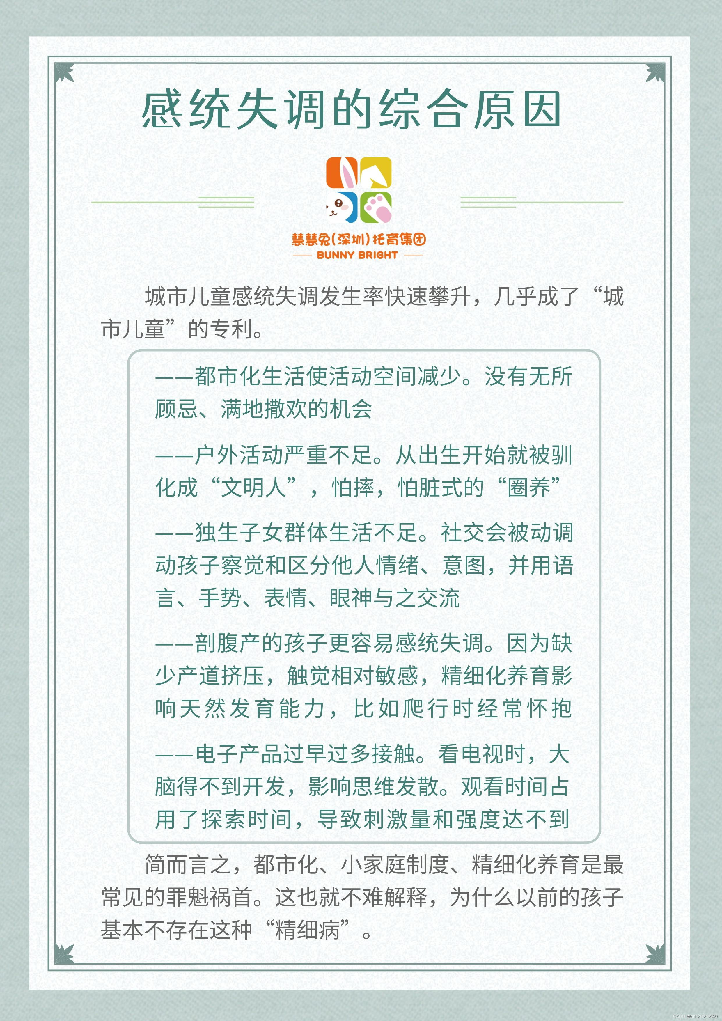感统失调是现今社会不得不正面面对的儿童问题,但看完感统失调的原因之后,我们不得不去深思,是等问题出现时补救来得更快活,还是初期就顺应生命体长成更容易?