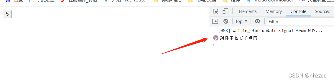 可以看到我们增加一个@click-n用来接收Count组件中emit的click-n事件,看下效果,随便点几下,打开控制台发现成功打印消息