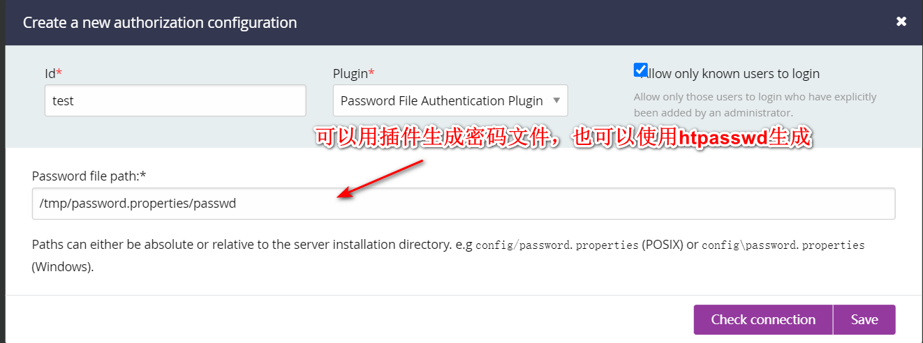 创建密码文件: htpasswd -c -B passwd user1 创建passwd文件,添加用户user1