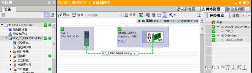 参照第6节的内容,编译和调试固件,并在TIA Portal 中建立RT项目。启动固件后,TIA Portal 切换到在线,可以看到PLC与设备正常工作: