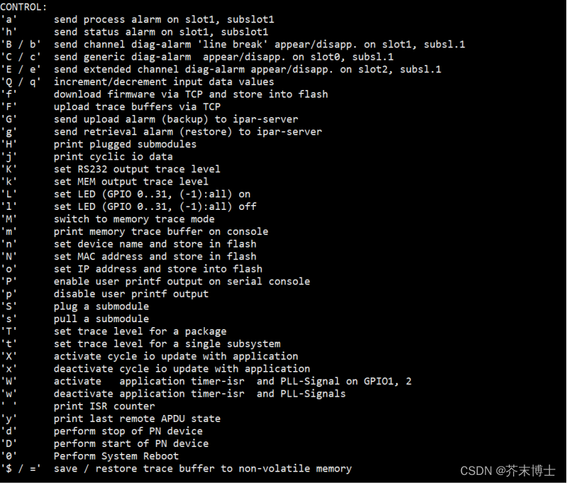 输入‘B’可以发送通道诊断报警‘line break’在槽1-子槽1。在串口终端输入‘B’,