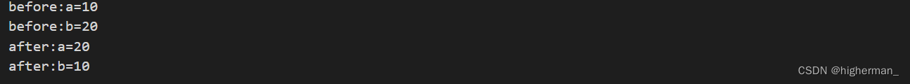 从上面代码可知,a,b变量的值经过swap函数的操作发生了值的交换。