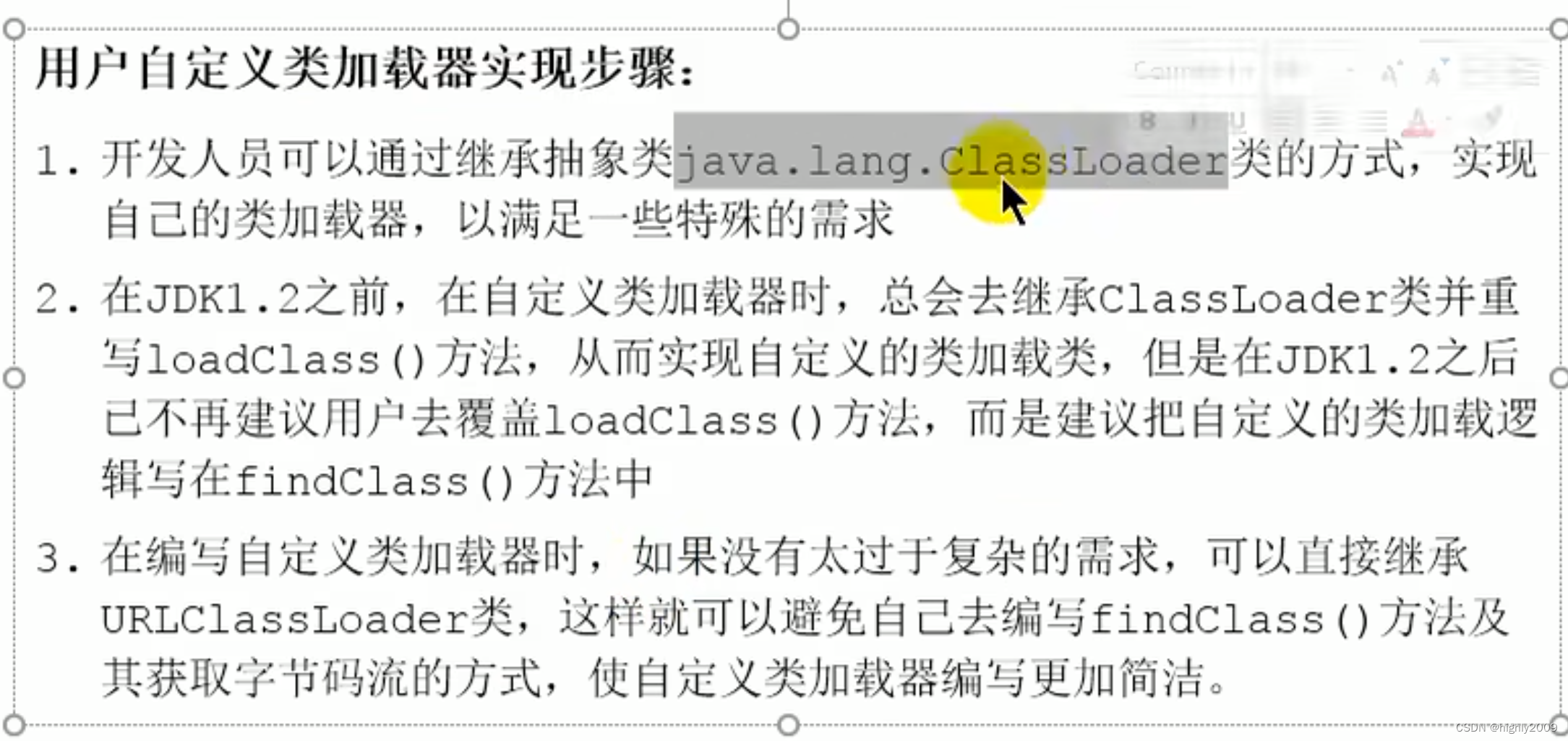 从概念上来讲,自定义类加载一般指的是程序中由开发人员自定义的一类类加载器,但是java虚拟机规范却没有这么定义,而是将派生于抽象类ClassLoader的类加载器都划分为自定义类加载器