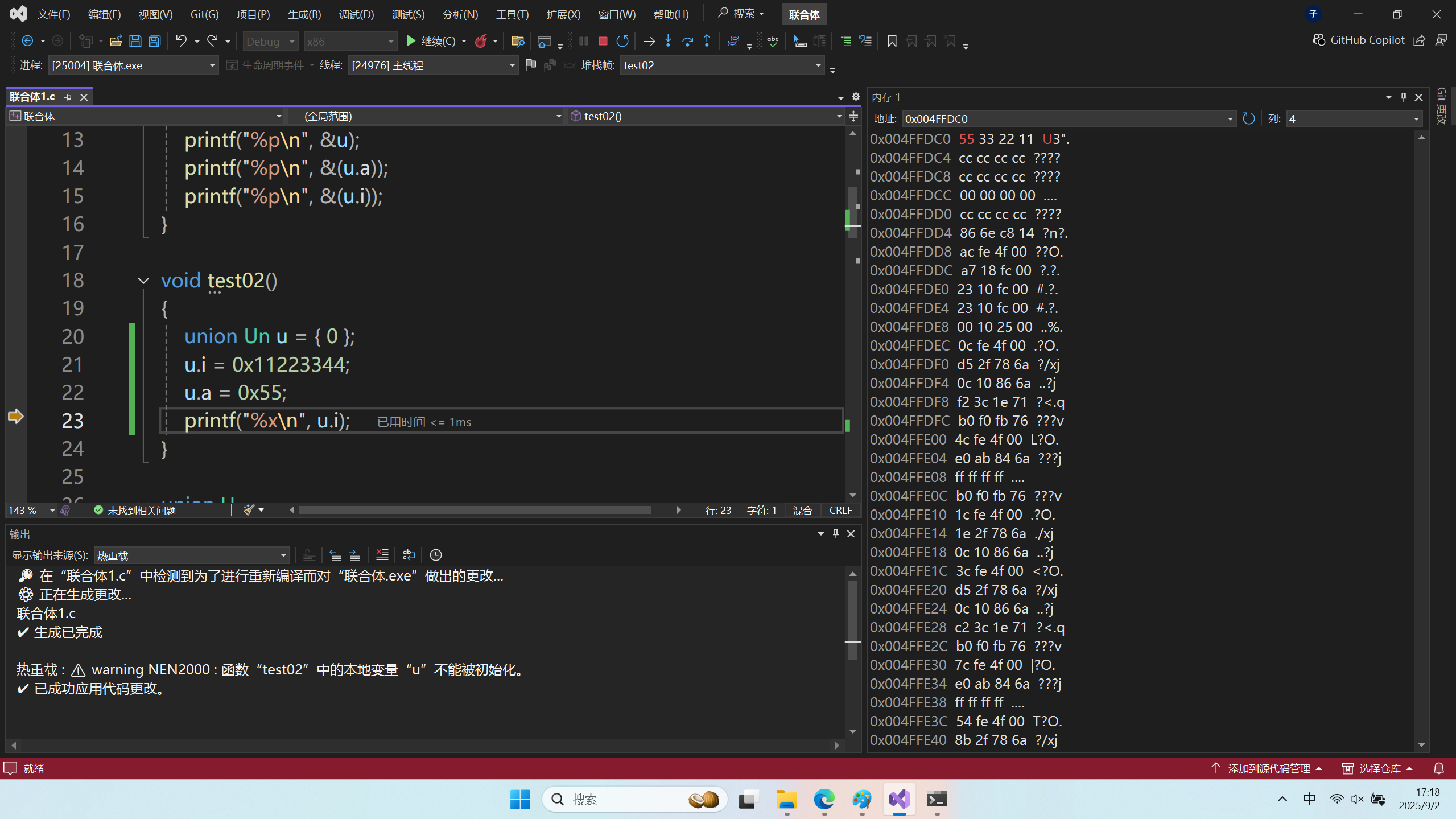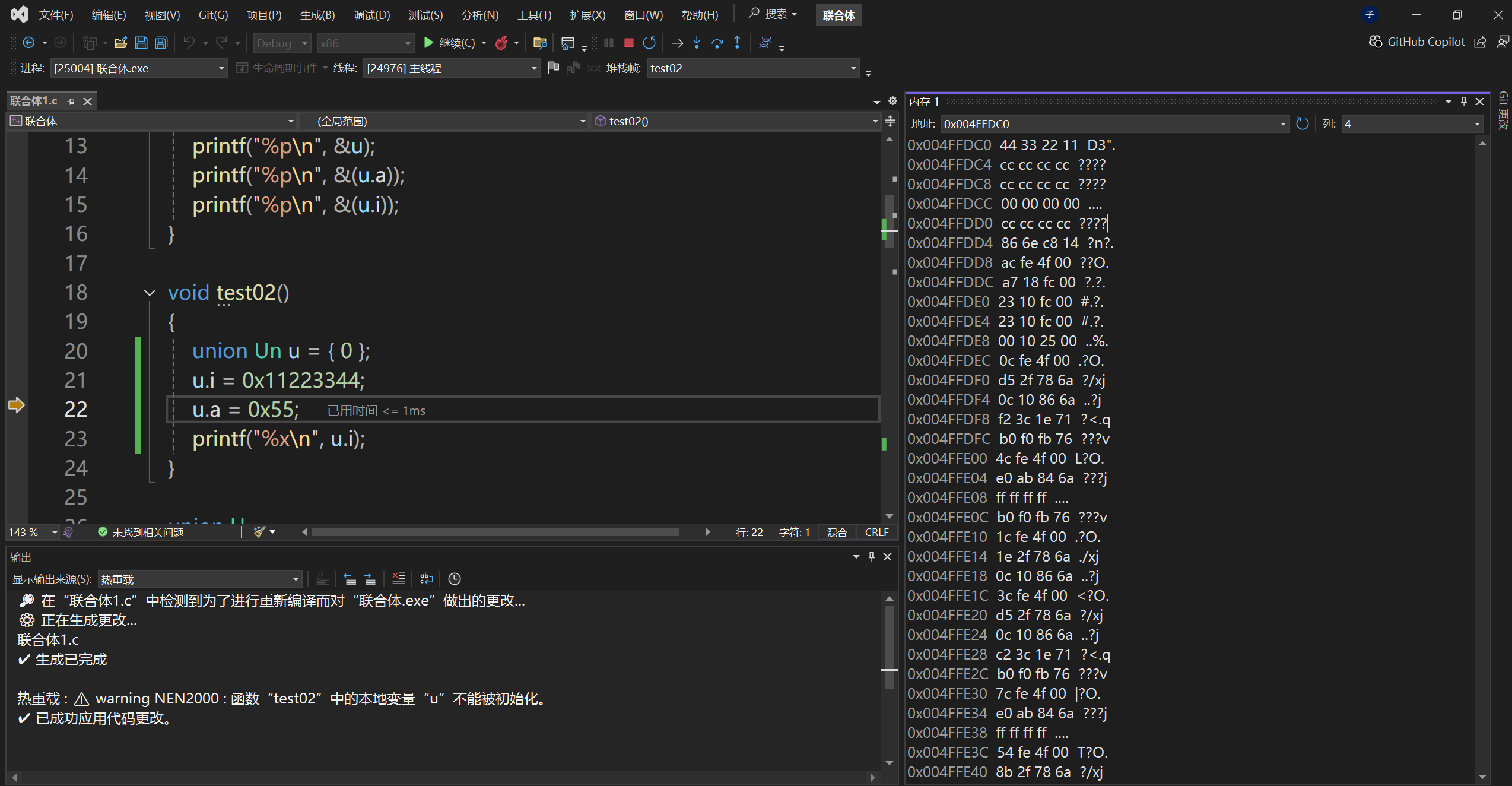 ①通过先对联合体中的 i 赋值,如下图所示: