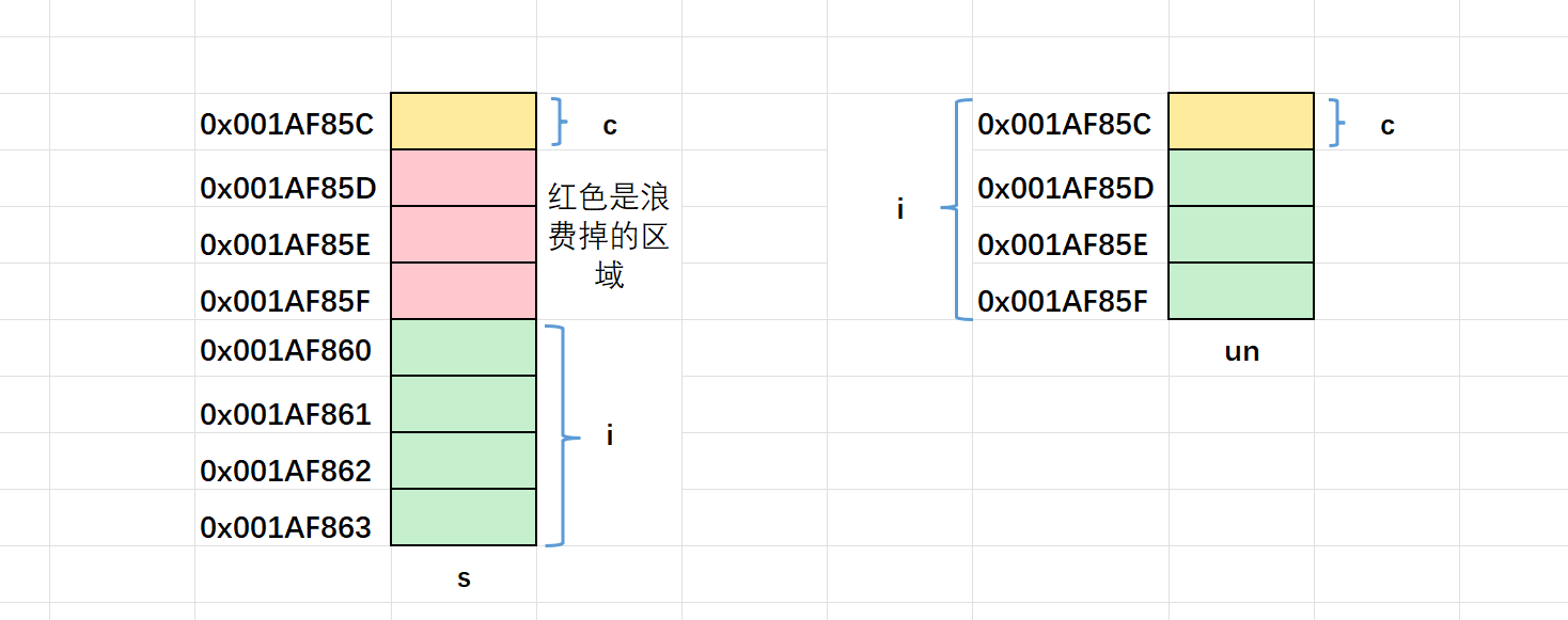 对于结构体而言,其存在内存对齐规则,而对于联合体而言,其存在共用内存的规则。