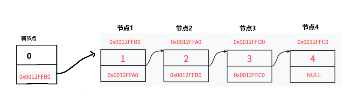 ①节点指针:用于存放该节点(单链表结构体)的地址