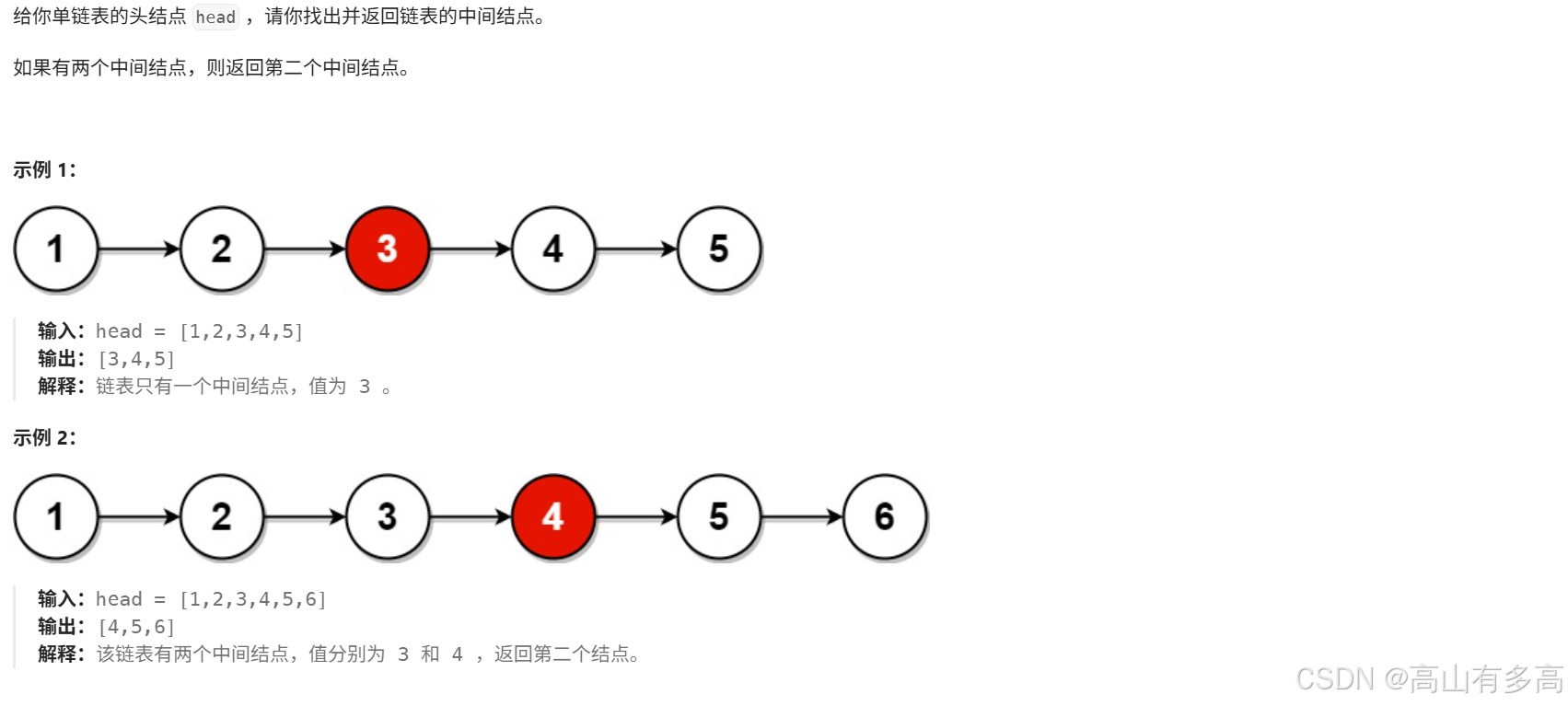 通过这道题,我们了解了对快慢指针的学习,进行运用 快指针=慢指针*2 这个公式。