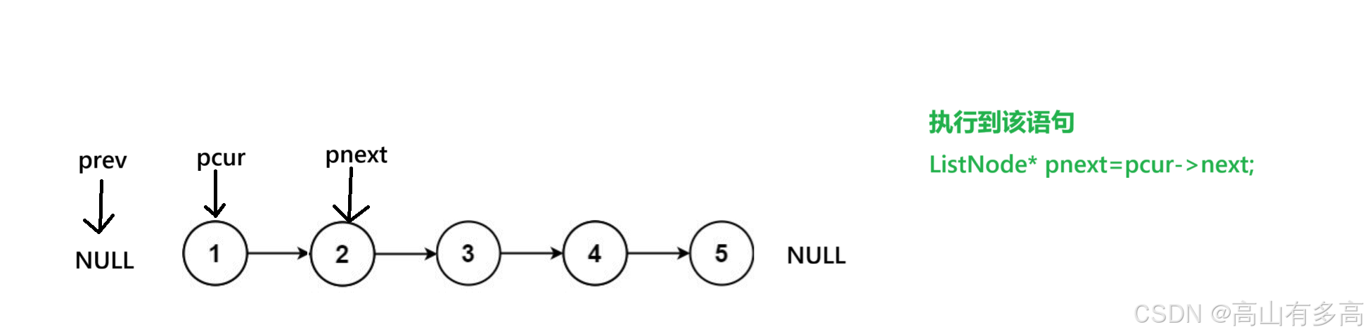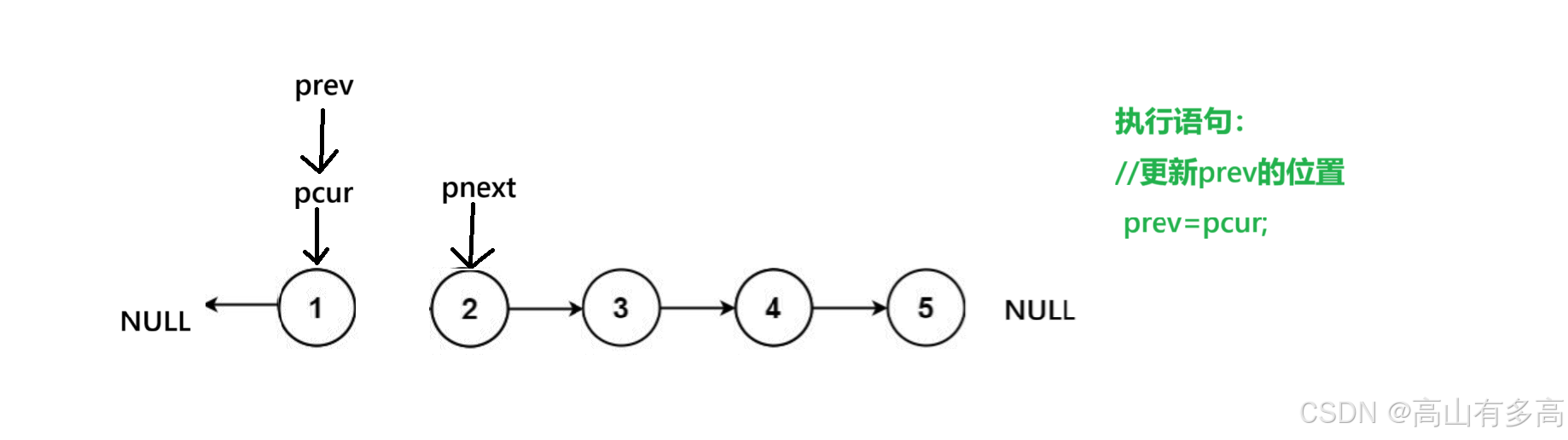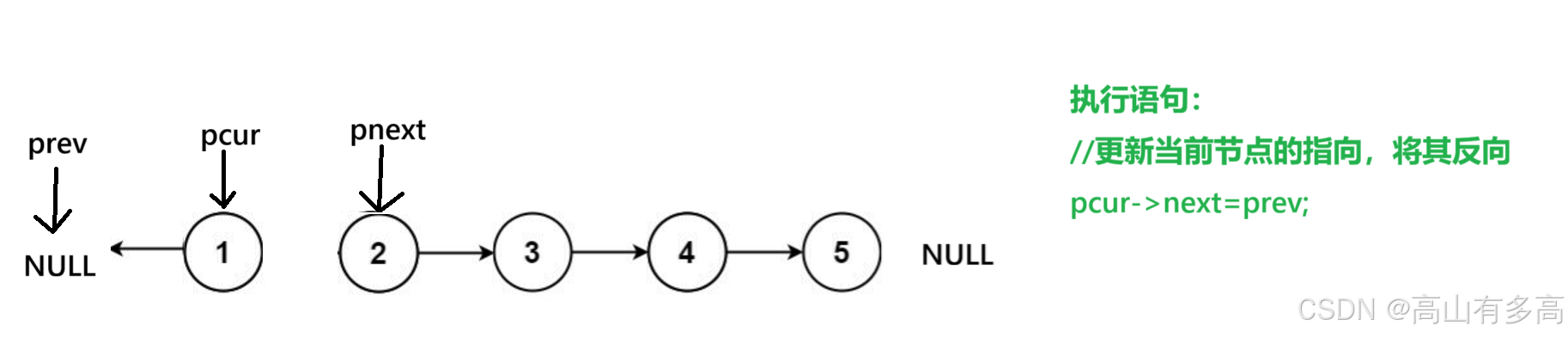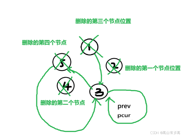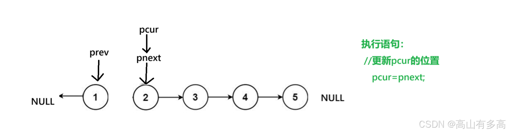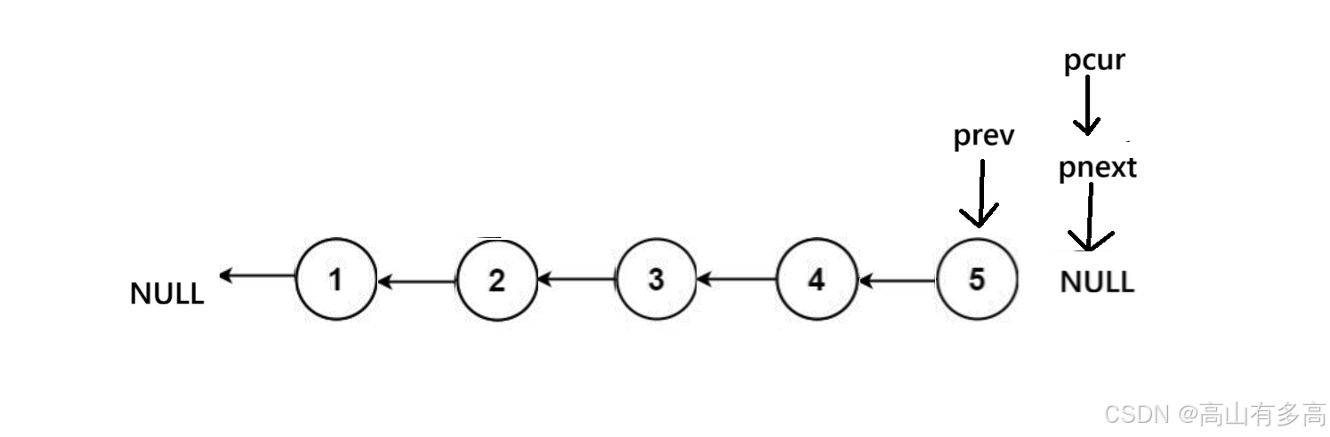 ②重点关注pcur指针和prev指针的走向,pnext只是用来临时保存pcur的下一个节点