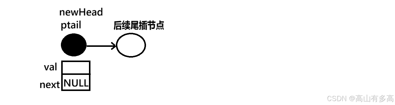 ①申请一个新的链表,定义头节点为newHead,定义尾节点为ptail。