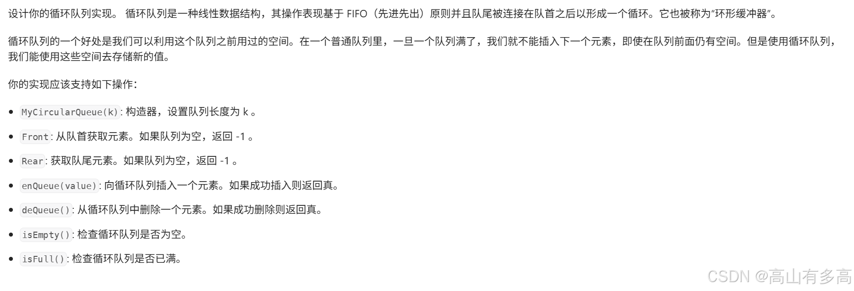 CircularQueue.h头文件实现:通过结构体定义循环队列,声明循环队列的相关接口函数