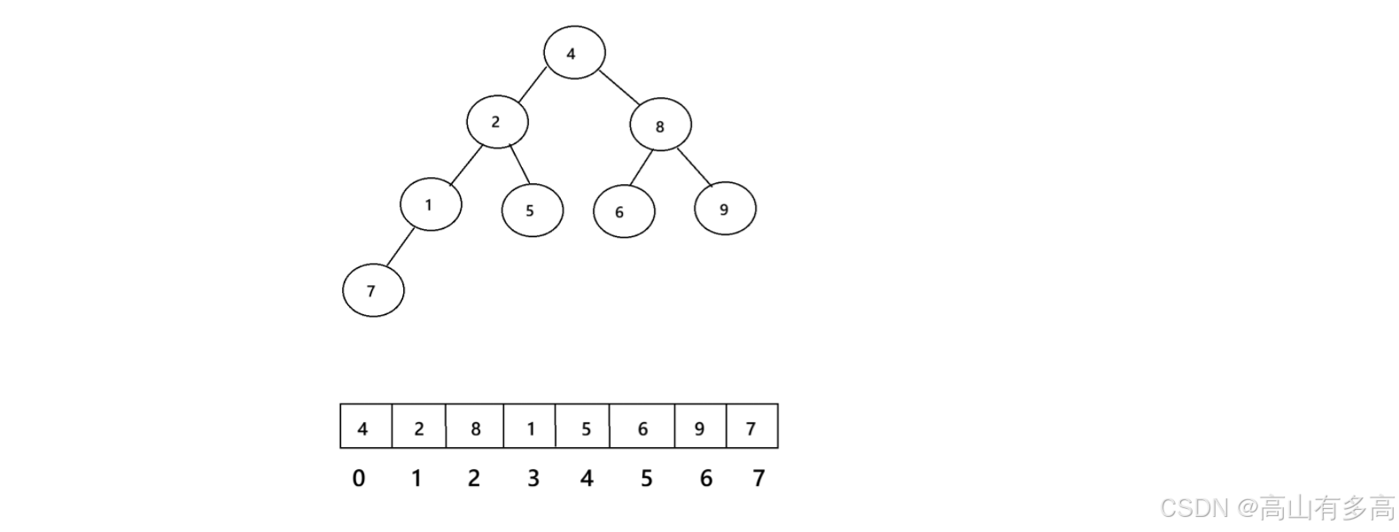 在实际应用中,我们常用数组来存储堆(一种特殊的二叉树结构)。