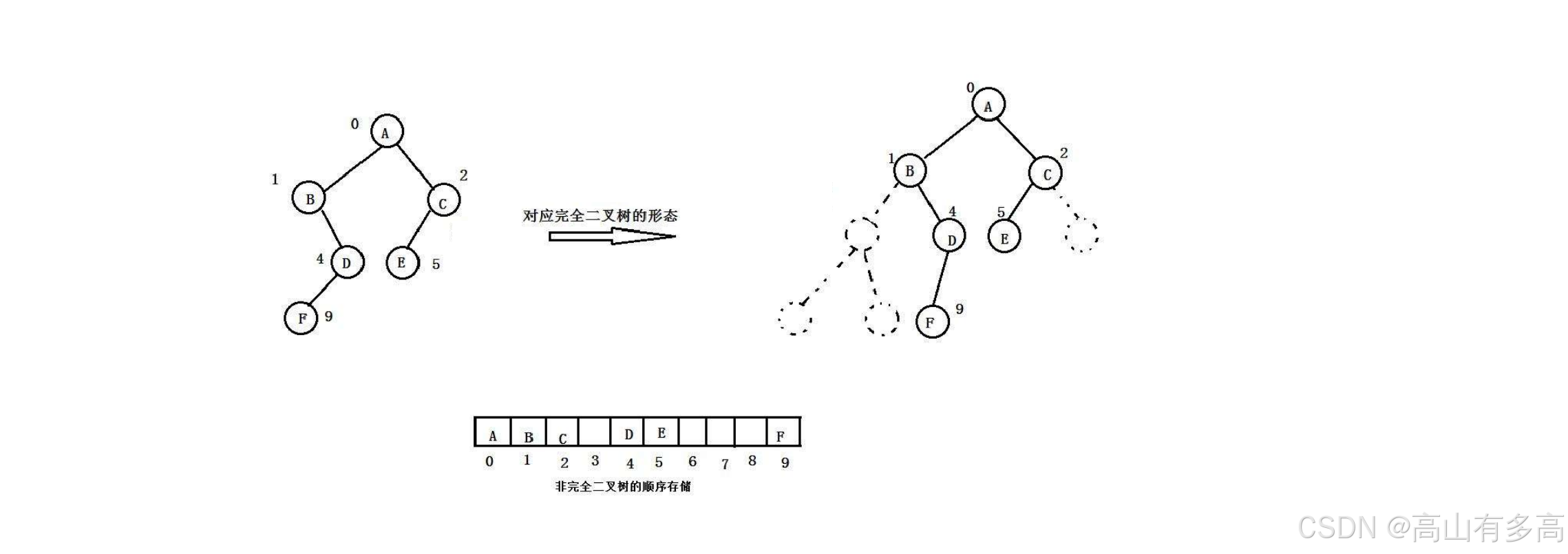普通的二叉树并不适合用数组存储,因为其节点并不是连续,会造成大量空间浪费。相比之下,完全二叉树更适于采用顺序结构存储。