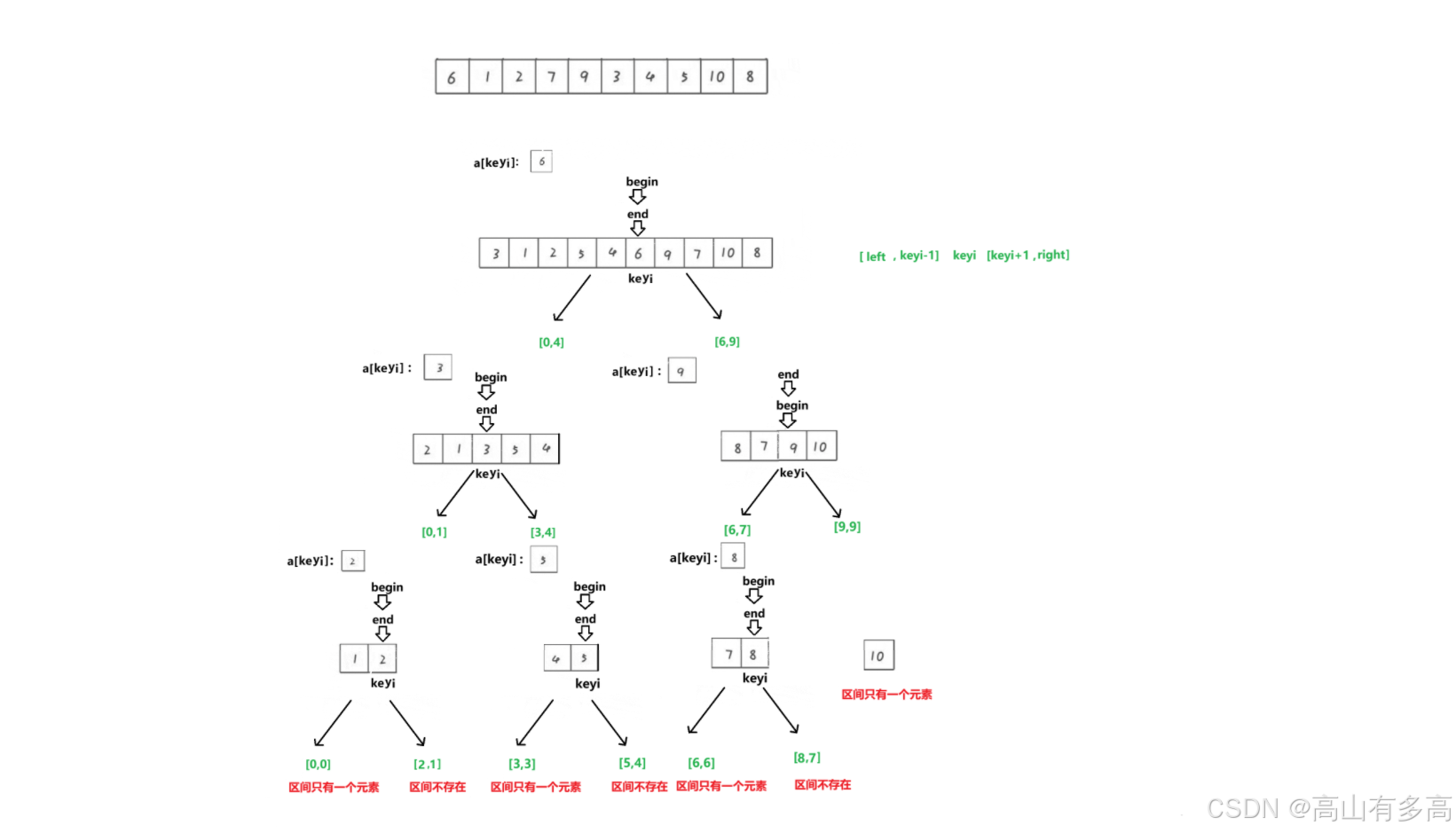 3.记录左右区间:记录左区间 left1 = begin right1=keyi-1 即 : [left1 , right1]