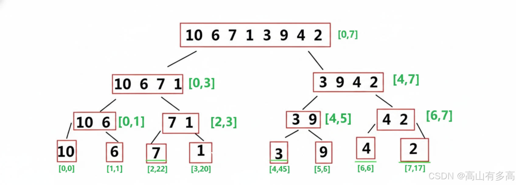 场景模拟:假设数组是 [10, 6, 7, 1, 3, 9, 4, 2],长度为 8。